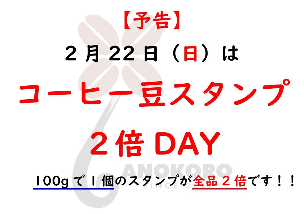 2月のスタンプ2倍DAYは2月22日(日)です。