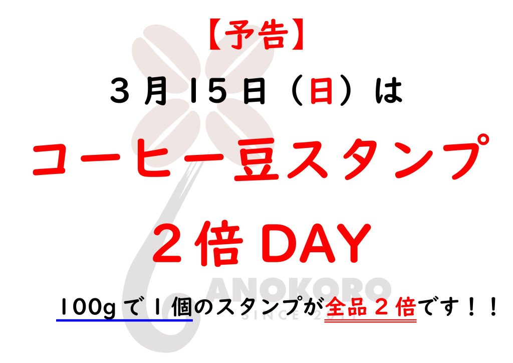 3月のスタンプ2倍DAYのお知らせ!